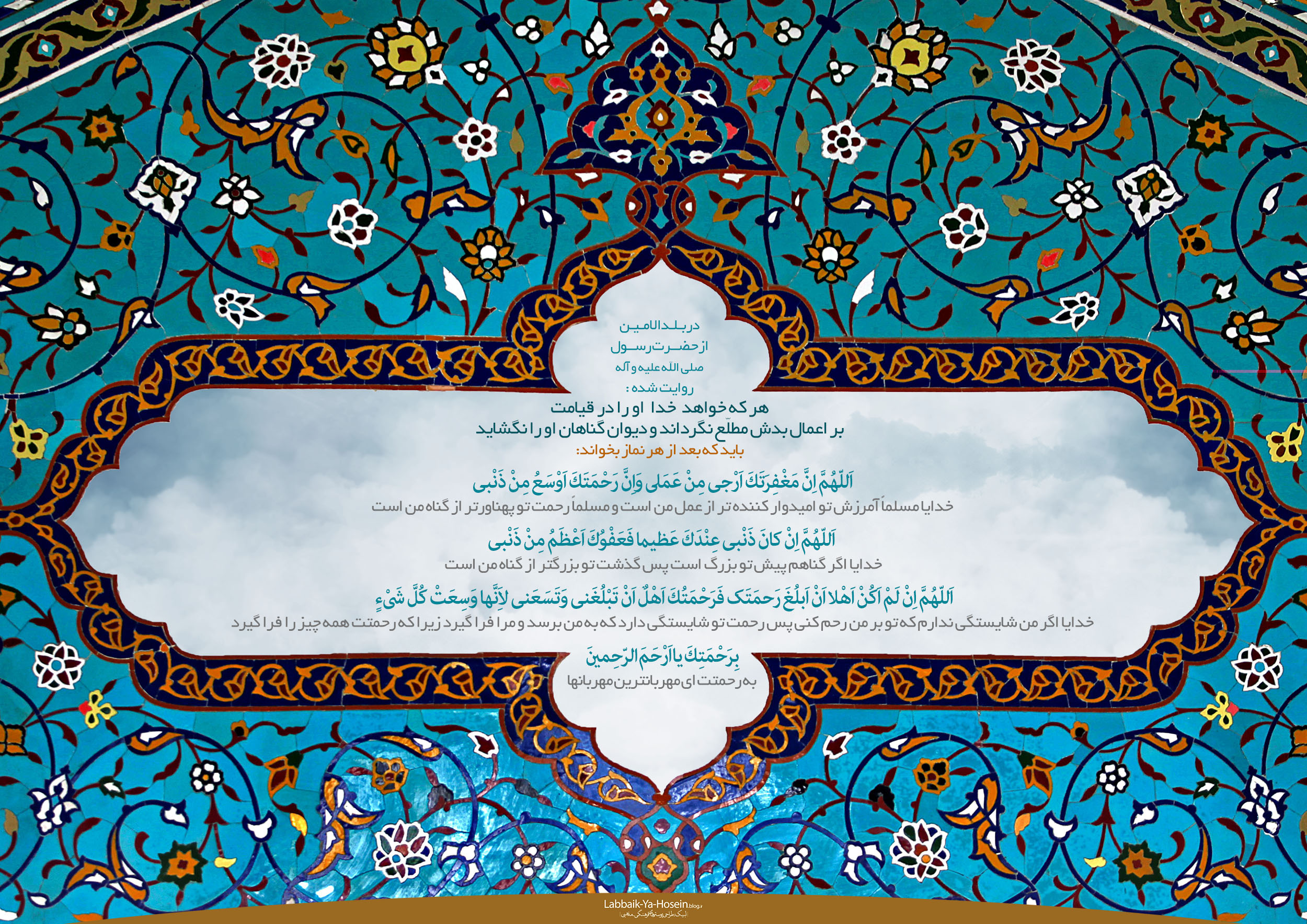 بارخدایا اگر گناهم پیش تو بزرگ است، ولى عفو تو بزرگ تر از گناه من است!